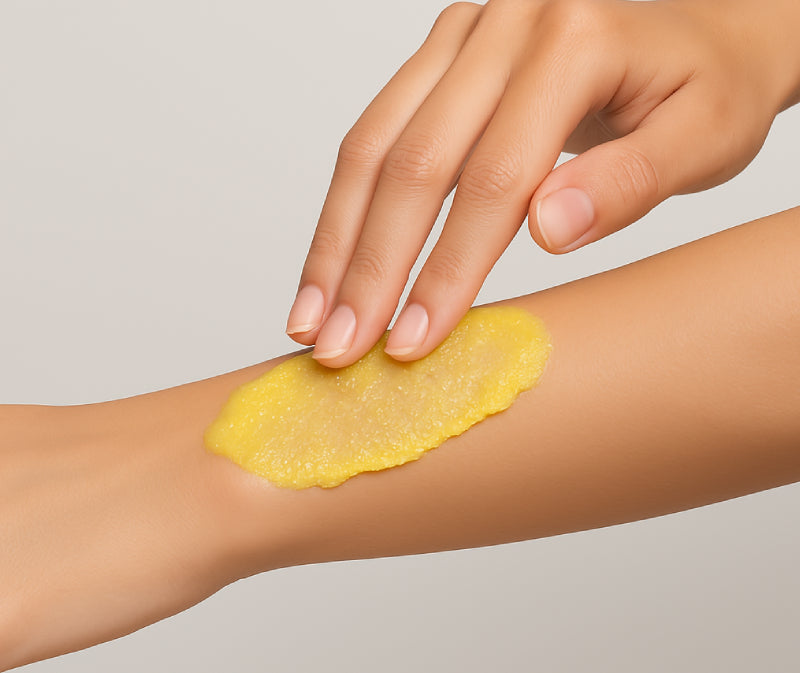 Le Combo Parfait associe un gommage doux au curcuma et vanille à une gelée royale réparatrice à l’aloe vera et citron. Ensemble, ils exfolient, unifient et apaisent les zones marquées comme les aisselles, le maillot ou le visage. Résultat : une peau zéro défaut, sans poils incarnés ni irritations, dès les premières utilisations.