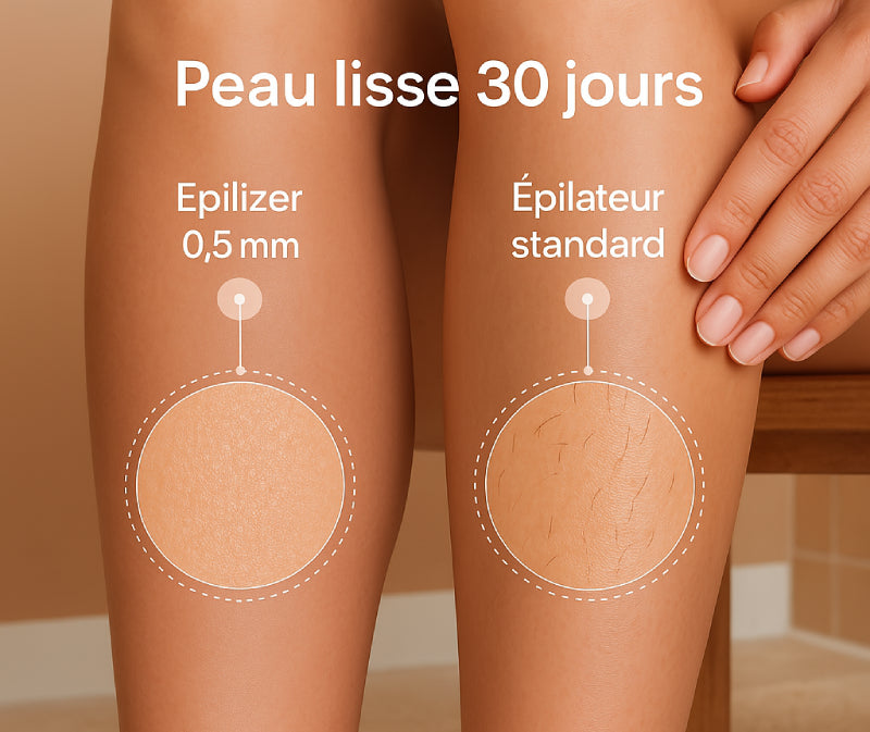 Jusqu’à 30 jours de tranquillité. En retirant le poil à la racine, l’Épilizer offre une peau lisse plus longtemps qu’un rasoir ou une crème dépilatoire.