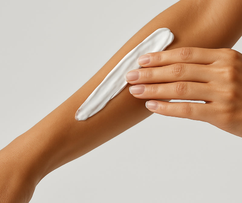 1. Sur peau propre et sèche, applique une noisette de lait sur les zones épilées.