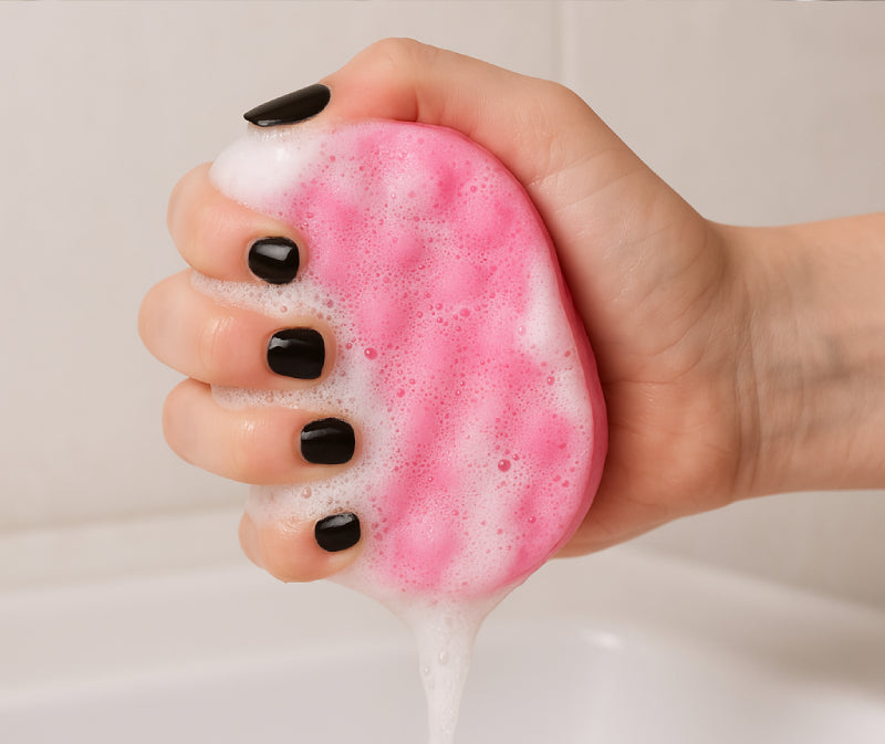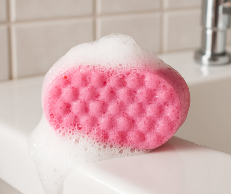 SubliMousse, l’éponge exfoliante moussante qui remplace votre gel douche et gant de toilette en un seul geste.