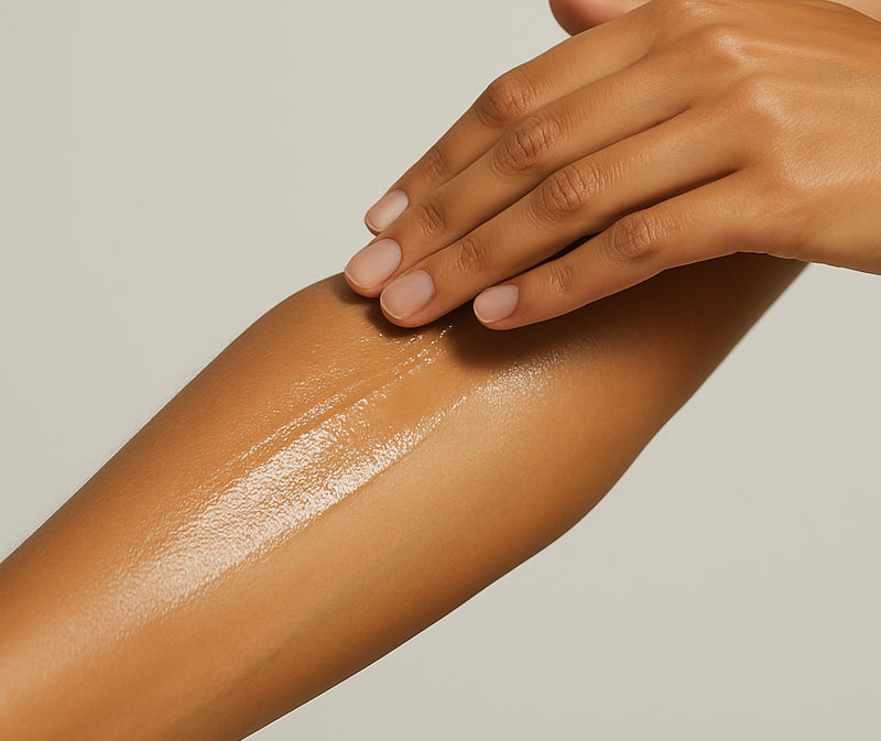 Des traces collantes persistent sur la peau après le soin.
